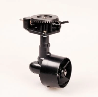 The Schottel drive unit, developed by the Schottel company, is a typical power unit installed on many types of working vessel such as tugs, ferries and buoy layers. The power of the drive motor is transmitted to the propeller, which is able to swivel. This arrangement alters the angle of thrust of the power unit directly, i.e. the flow is not deflected by a rudder, and this makes the Schottel drive unit a highly efficient design. The CEMSchottel drive unit emulates the functions and construction of the full-size system: the swivel range is 2 x 90º (180º) if a 2 x 45º servo is used.