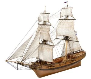 A detailed wooden kit of the 2-mast brigantine (modern name for its rigging type is “brig”), reconstructed following archive documents and drawings. An easy to build internal hull design allows the kit to be built even by non-experienced model builders. The design compensates the material bending, so there is no need for the preliminary straigthening of the frames or the keel frame, if they have any bends.